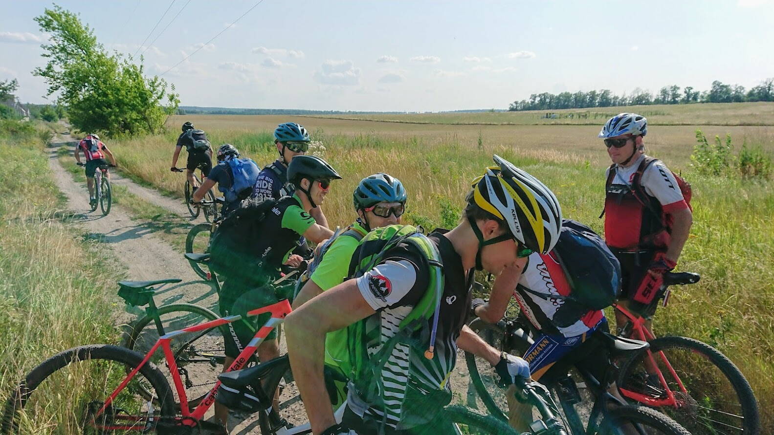 Ну, в общем-то, Серёга всё правильно написал! Маршрут сам по себе довольно сложный, так ещё и эти заросли! Сильно они нас замедлили, так ещё и много сил забрали. После Озерянского леса меня начало выключать, но Коля выручил меня изотоником, за что ему отдельная благодарочка, и мы доехали до Мерефы. Там отдых и животворящий чебурек сделали своё дело, и мы, уже только втроём, поехали добивать маршрут. Поскольку времени было потеряно не мало, решили чуть подрезать, зато проехали ещё и Чёрный лес по классике! В итоге: 193 км, 2040 м набор, 16,5 средняя. Как-то так. :smile:
