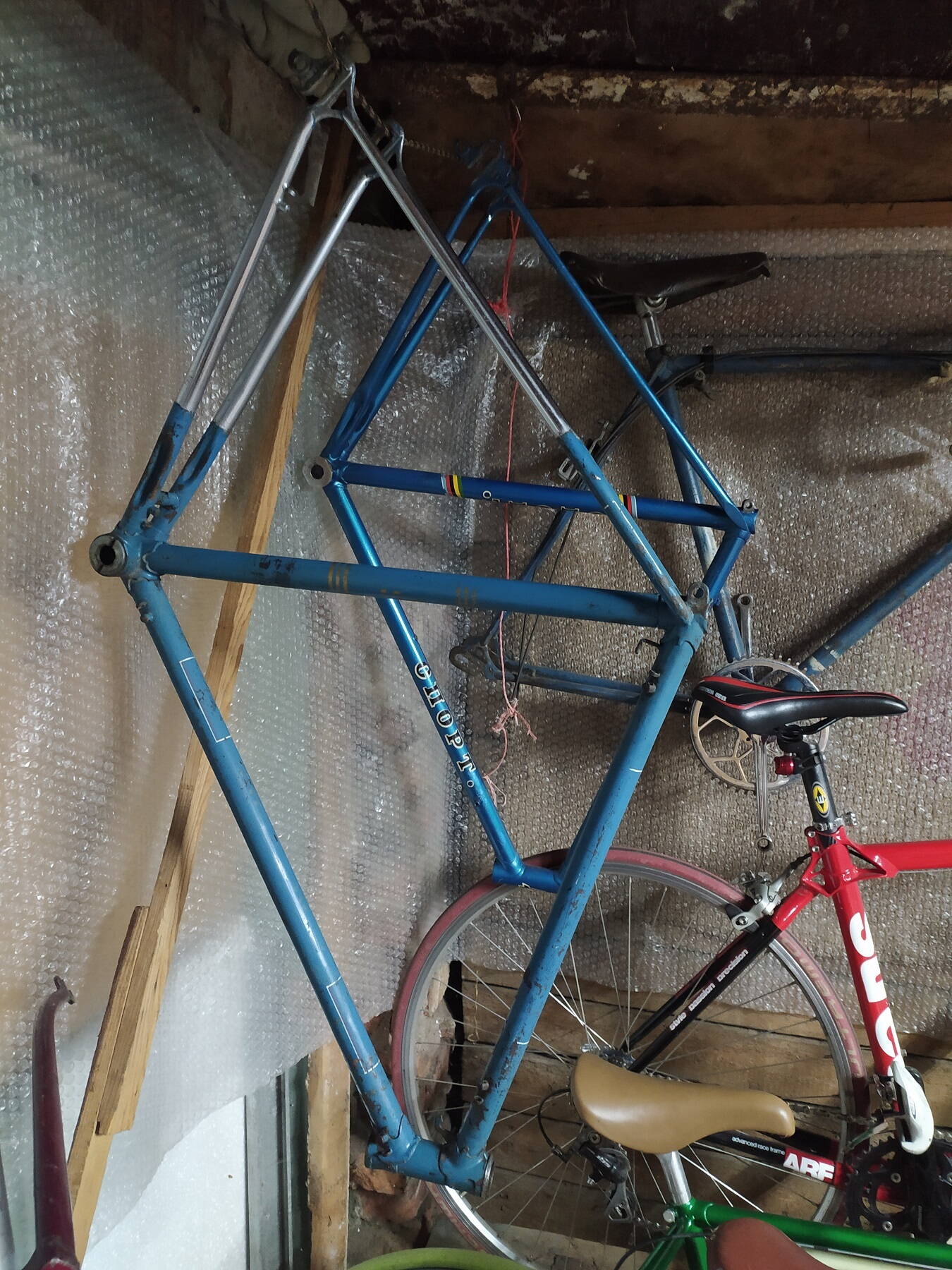 С одной стороны, у меня было практически все для того что бы собирать его в сток, так я и собирался сделать забирая его из почты, но осмотрев навесное увидел, что гонщик ранее им владевший, мечтал о недосягаемой в те годы кампе. :wink: Это навело меня на некоторые мысли. Так же важным фактором в принятии решения стал момент с вилкой и задними перьями. Хром "конечности" были сделаны на одном из Одесских заводов. Процедура бесспорно добавила велосипеду кошерности, он стал походить на маститый забугорник, но это не являлось заводским решением. Не закрашивать же хром, да еще и в таком достойном сохране... :no: Поразмыслив, решил что буду собирать его на кампе, как и было задумано бывшим владельцем. Рядом с абсолютно стоковым Чемпом 61го, синий 63го будет интересно смотреться как пример того, каким мог быть тюнинг Чемпиона советским гонщиком. Пожалуй некоторая историческая ценность сохраняется, подумал я, и принялся за сборку. Практически все оборудование в котором велосипед приехал было заменено на родное, и будет понемногу заменяться кампой, по мере поступления. Начало было положено неплохое, имелись камповские торцевые манетки, куплены еще хрен знает когда, и представить не мог, что они окажутся так в тему спустя столько лет