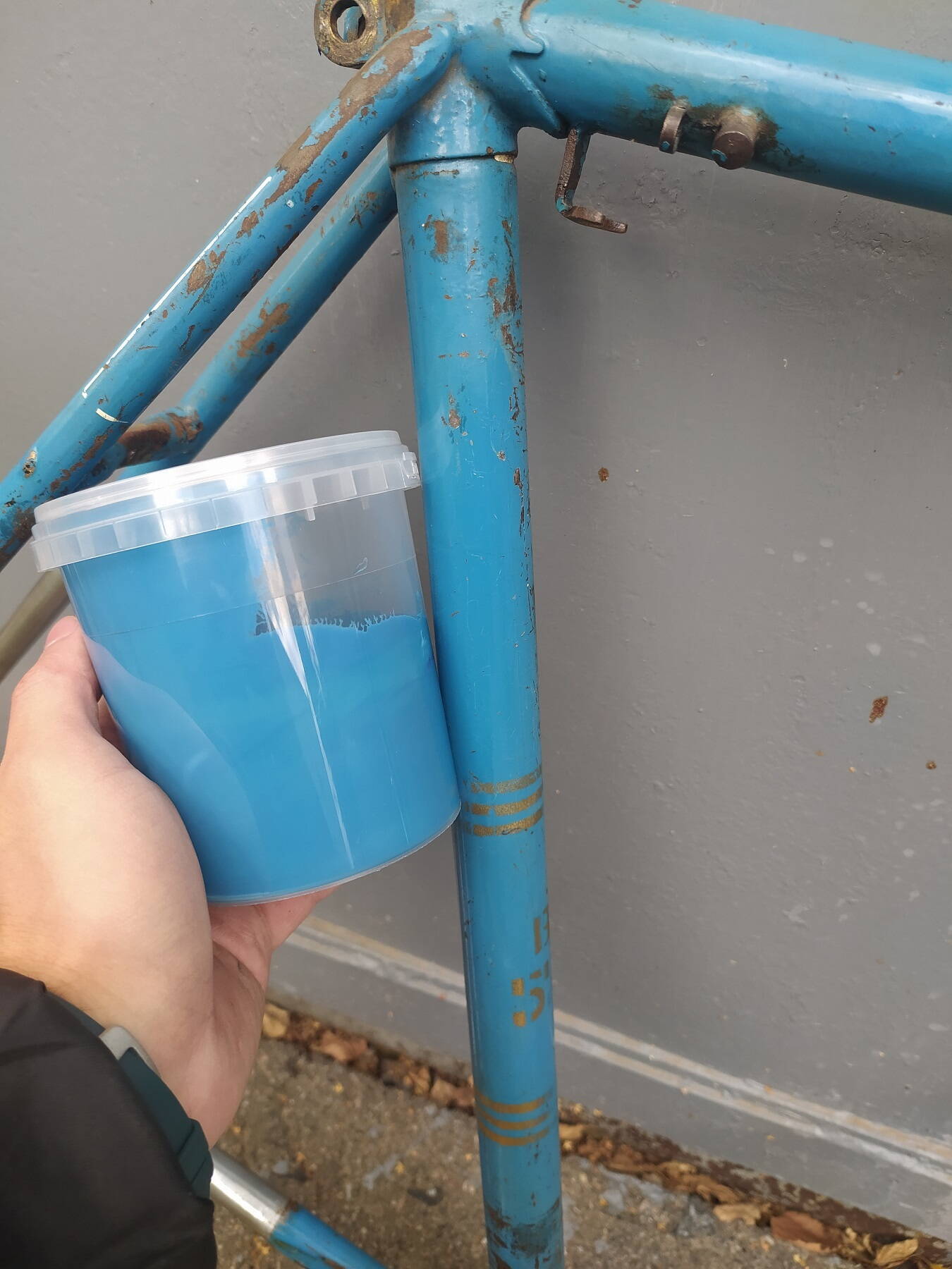 Раскидал раму, отмыл, после небольшой полировки хром несколько ожил, но вот ЛКП было не в самом лучшем состоянии... Мысли перекрашивать полностью естественно не было, ценю родной окрас, по этому как обычно повез нового пациента на подбор к колористу. Пожалуй в этот раз попали если не в точку, то очень близко :good:
