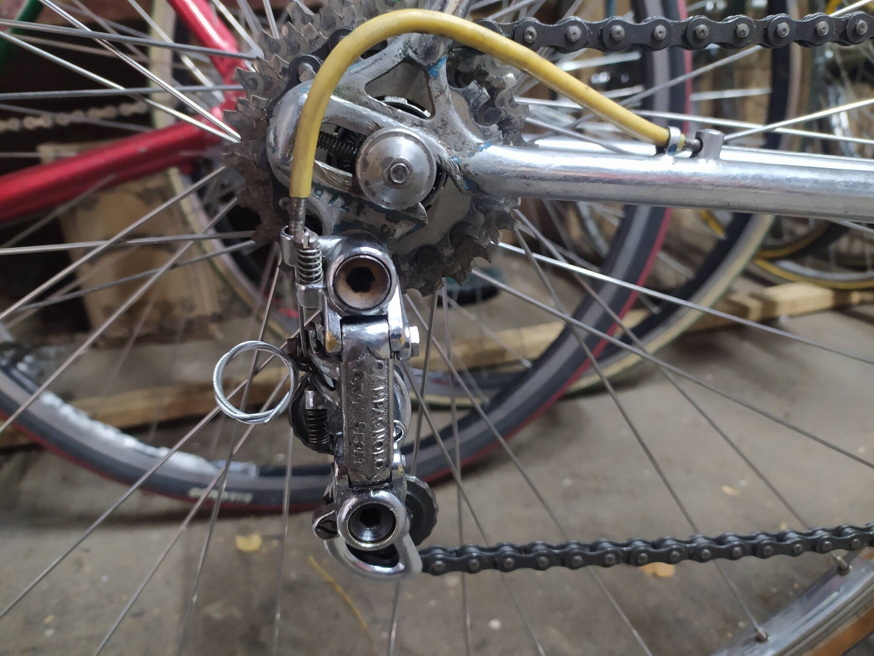 Ориентир был выбран, и вскоре удалось обменяться с товарищем на относительно подходящий по годам задний переклюк. Остается обзавестись камповской коробочкой, а пока установил затертый "харьков" с надписью кампа.
