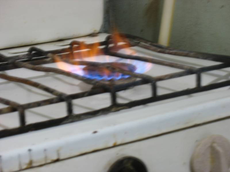 Якщо у квартирну плиту подавати газ з балону, він згоряє не повністю, тому що суміш має забагато газу та замало кисню. Звідти і жовті язики полум'я. Можна замінити форсунки у пальниках, можна не давати повний газ. Але краще використати відразу плиту, од початку зроблену для балонного газу.
