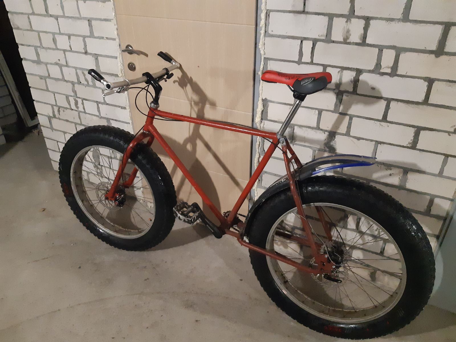 Замечательный байк. рекомендую не оставнавливатся и делать второй. на этом ездить, второй более крутой сделать. вилку сильно не надо варить, там нагрузка ерундовая 15 кг макс. Следующий рекомендую делать на штоке 1.1\8" он более мощный. автору респектище. я еще не решился на постройку фэта, хотя 29+ уже делал. и не один :yes: