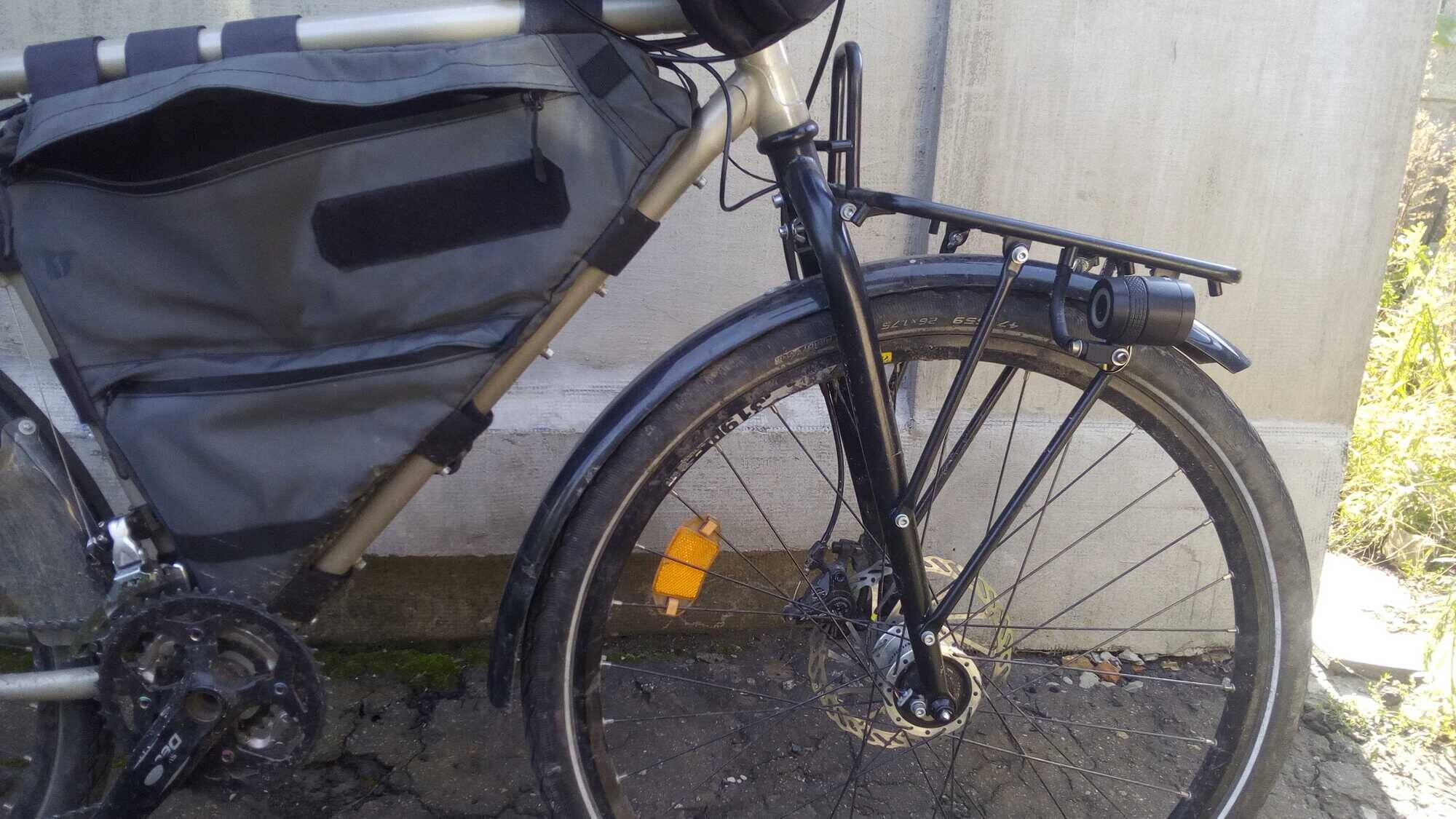 Але моє питання виключно у надійності тієї вилки потім. Все ж ноги поплющило, відповідно їхня жорсткість явно буде меншою. Очкую, щоб не склась вилка при гальмуванні.