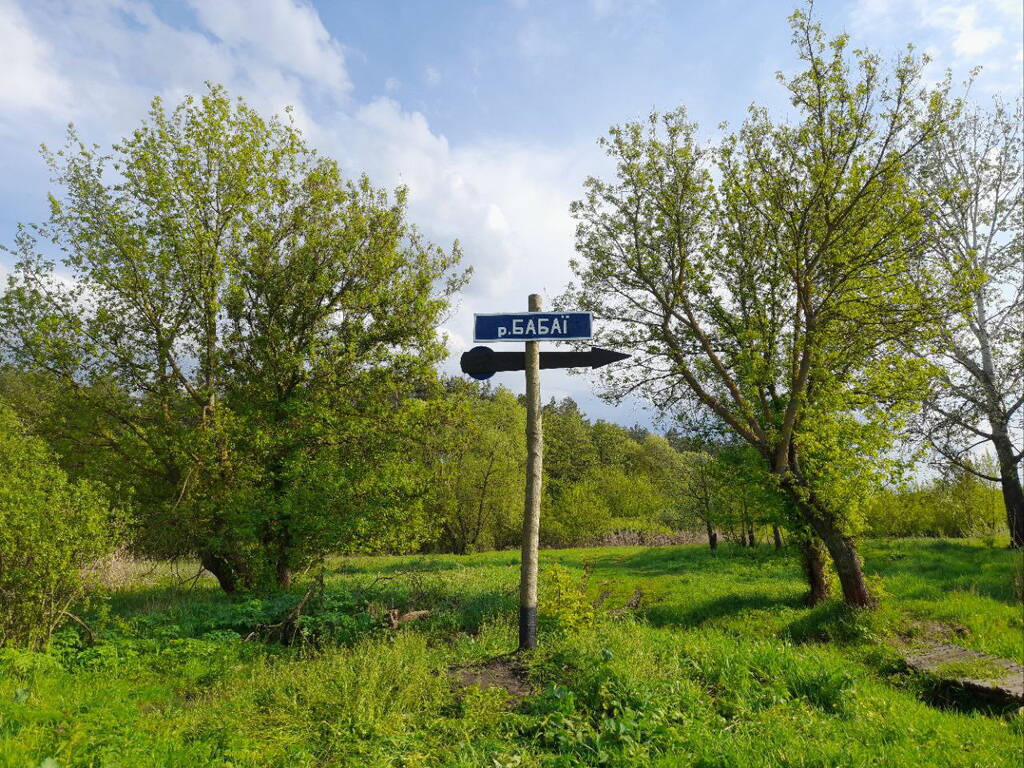 На верхней доске будет надпись "р. БАБАЇ", на стрелке — "Удянская тропа".