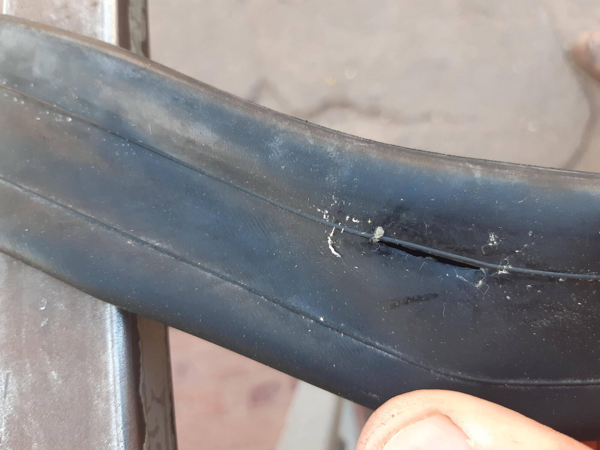 Еду по асфальту, чувствую падает давление в заднем колесе. Две попытки подкачать - немного проехал, потом всё просто разлилось по внутренности покрышки.