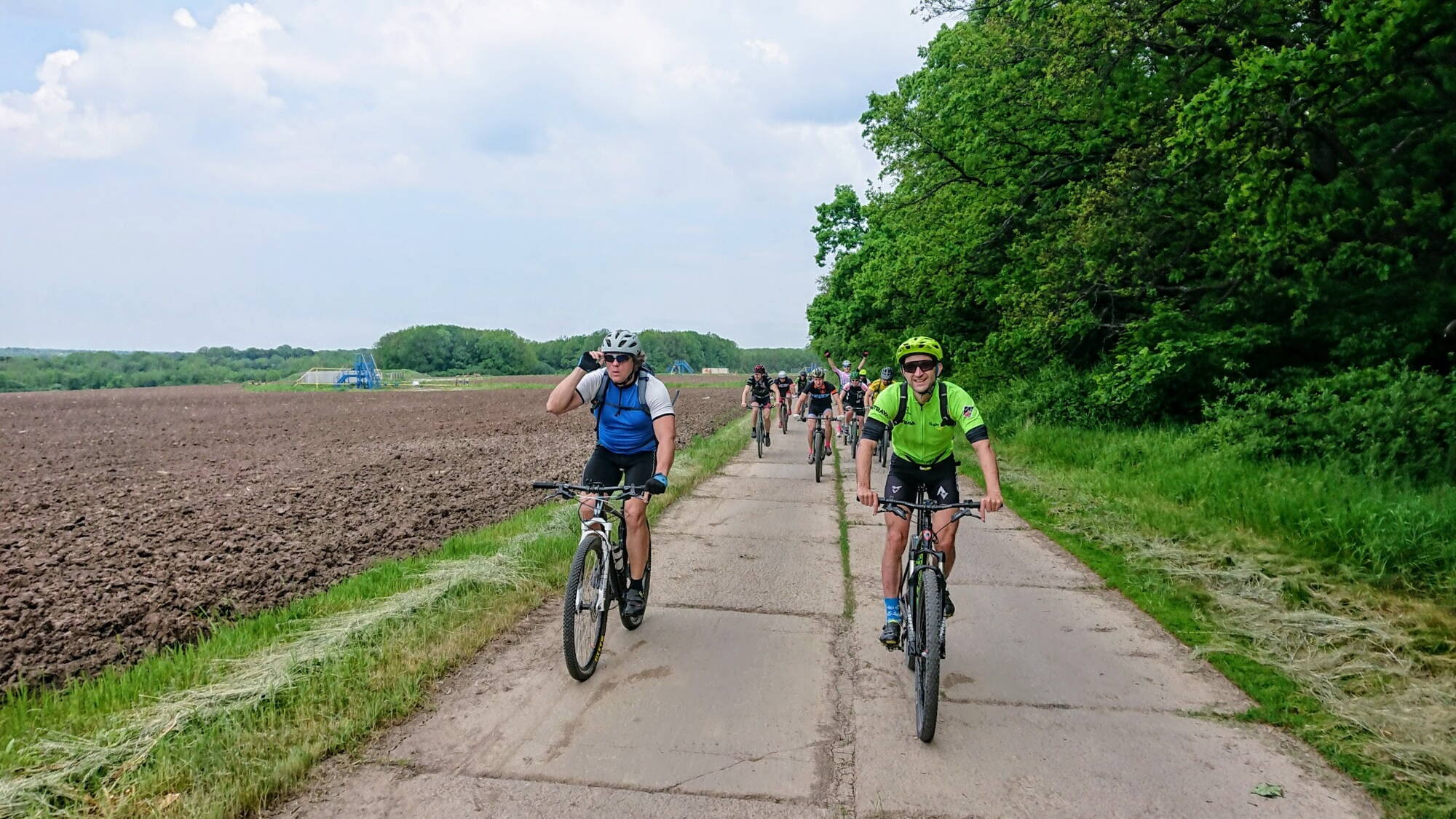 Звичайна неділя, прохолодний сонячний ранок і великий заряд настрою перед стартом маршруту, бо невизначеність погоди тримала в тонусі, очікування непередбачуваних складових на нерозвіданих ділянках споживали своє. Але ж с кожним кілометром та ще й в такій "немаленькій" компанії "не так сталося, як гадалося" зійшло нанівець. Як і планували, майже без зайвих ускладнень, потрапили в Рокитнянське урочище, в плані доріг і рельєфу місцевості такий собі апендикс, відшукавши рибацьку стежку серед хащ проїхали далі вздовж всіх озер у саме Рокитне. З того моменту колір неба явно натякав, що у погоди інші плани за наші, декілька разів намагався каплями дощу нас налякати після привалу у Бахметівці, якось втекли, або удача була на нашому боці, або чималенька польова ділянка проти вітру пішла у залік замість дощу. Отже, у підсумку вийшов гарний насичений день, побували в нових місцях з мальовничими краєвидами, брудні від пилюки, але задоволені. Дякую всім за компанію та бадьорий позитивний настрій!