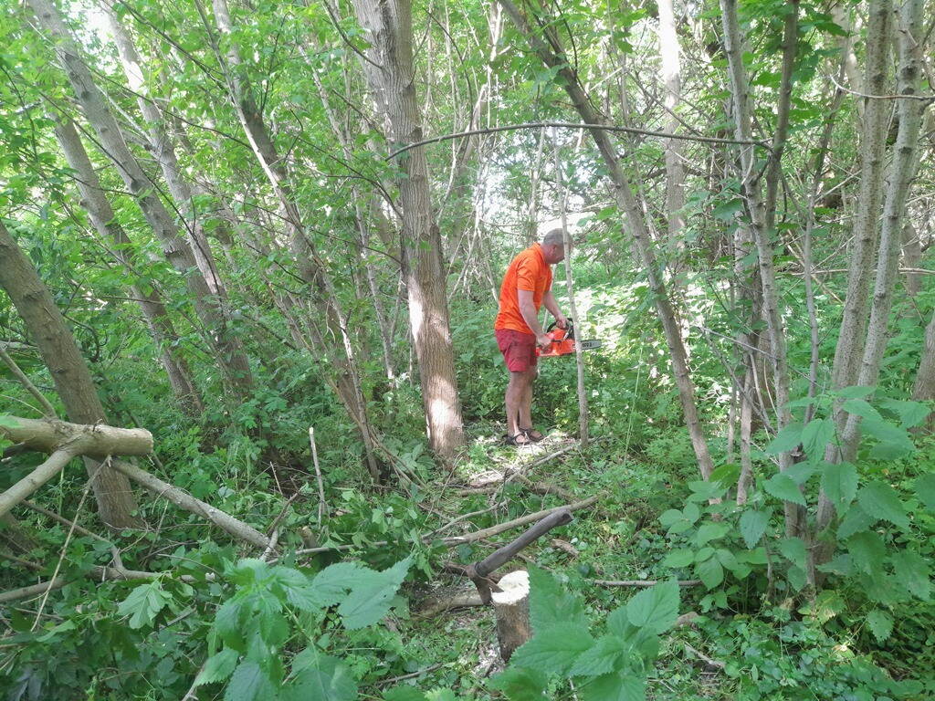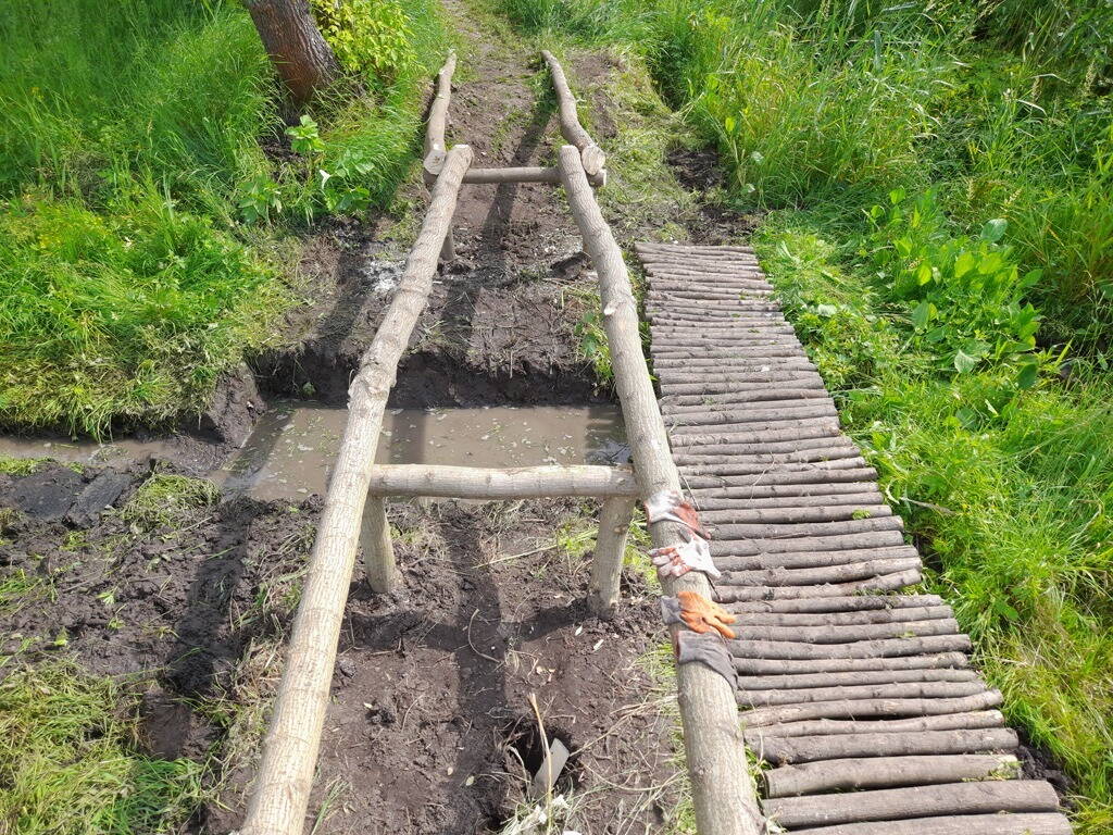 Вчера много чего сделали..., засыпали ямки (которые, в основном, оставляют кроты), продвинулись в строительстве моста, обрезали нависающие ветки.