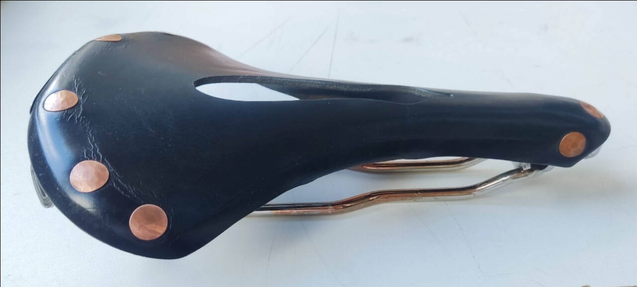 Седло топове Brooks B17 Champion Special (black) з мідними закльопками. Кастомна модель(підрізка юбок та підгин з низу як у Brooks B15 Swallow. Отвір як у Imperial.) Седло в хорошому технічному і візуальному стані. Рейки рівні. Шкіра без дефектів. Болт натяжки шкіри викручений на 4мм. Ресурс великий. Седло відразу супер зручне! Хто не катав на брукс треба пару годин, щоб звикнути до ефекту "гамака". Після їзди на цій сідушці на інших не зможете кататись. Підійде тим хто любить продуктивність і зручність,або не може підібрати зручну сідушку.