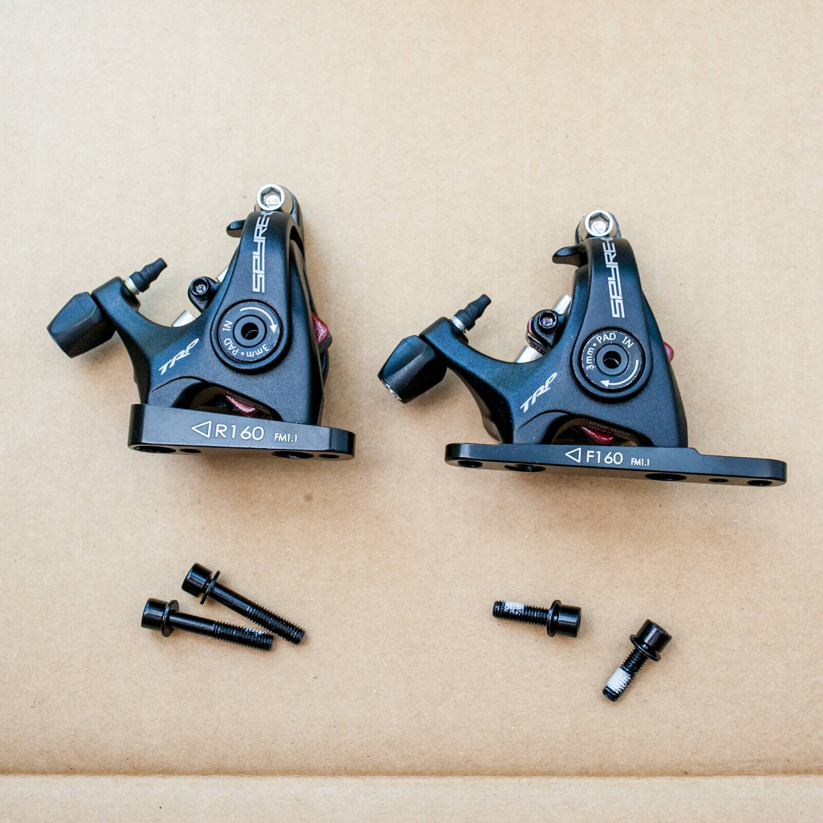 Нова дискова механіка TRP Spyre під шосіки, гревели (flat mount) двосторонній підвод колодок. Хід троса під дуали.