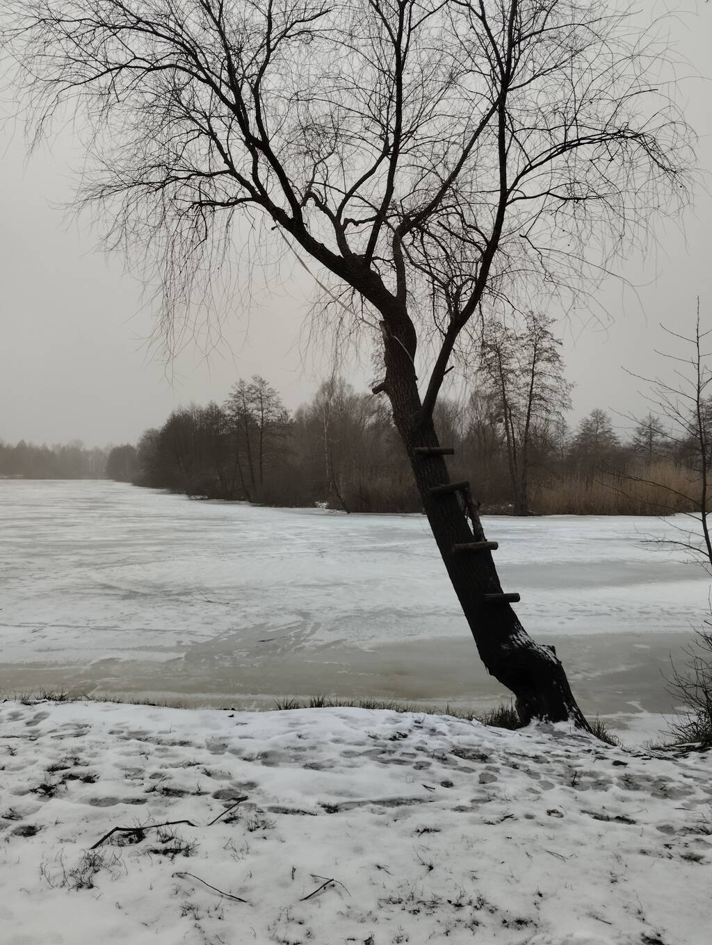 Лід на річці іноді потріскував, намагавсь їти м'яко і з великою дровинякою.