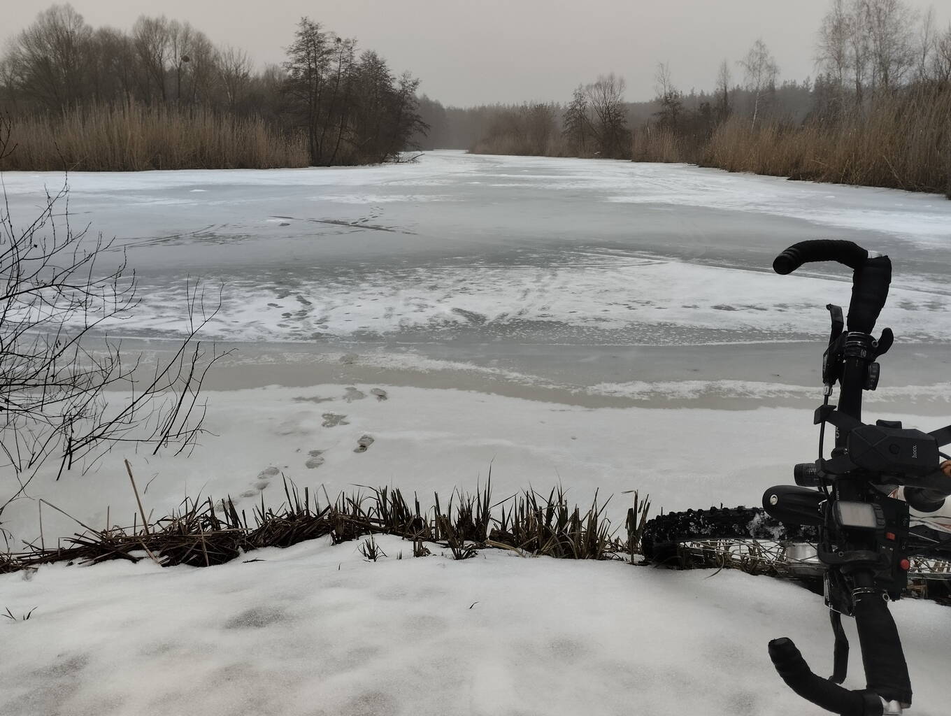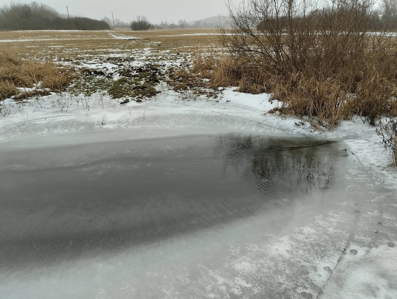 Саме складне було потім, поймою назад, часто іхав по льоду у воді. Нести на собі не прийшлось, але перед рокитним через річку тягув за колесо майже лежачі на тонкому льду.