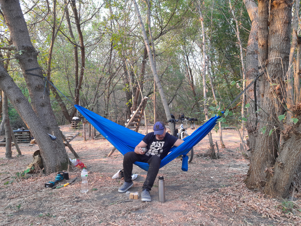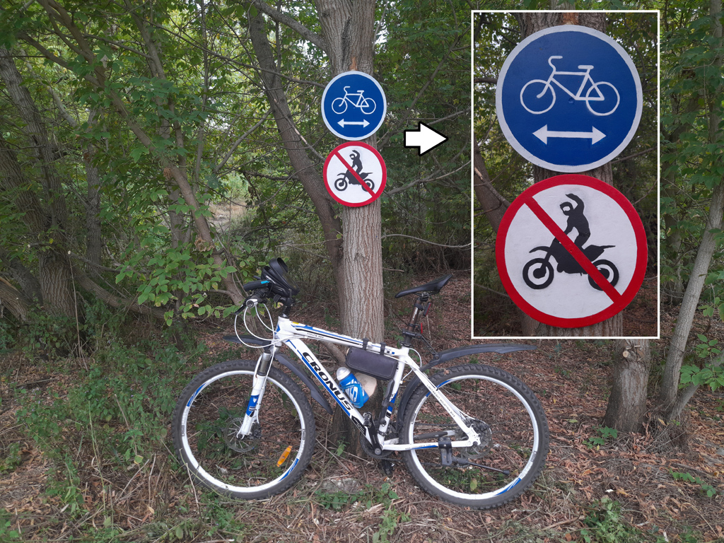 Повесил рыбакам "кирпич", к ним по ошибке заскакивают иногда велосипедисты :), в конце маршрута перевесил знак "велодорожка". Покупался в речке, напился чая и домой...