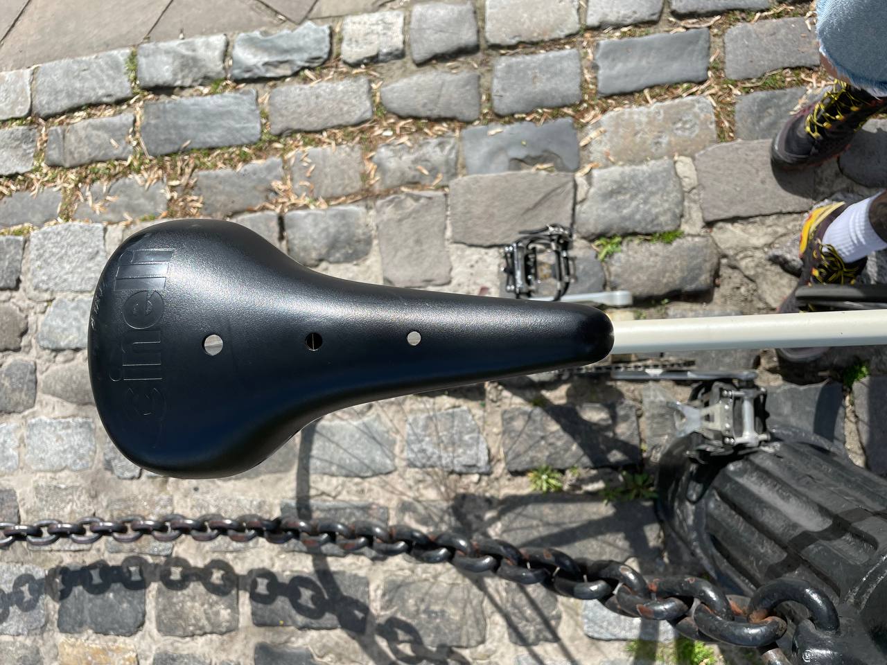 Років 10 назад вдалося врятувати декілька рам з під радянської збірної чи то З самарського велотреку чи з якогось іншого кацапського вже не пом'ятаю. Але коли велотрек розібрали місцеві бариги на своїх форумах виклали декілка дерос та чінеллі. Цю конкретно раму я забрав собі і зібрав її на всих італійських деталях крім педалей, вони японські. Велосипед стоїть без діла так як я вже давно не катаюся. Як би мені не хотілося його продати але всетаки треба передати його знаючій людині, цінителю. Рама 58. все інше на фото. Все рівне , не падав не бив. Єдине що треба трохи прочистити його і перезібрати бо давно стоїть. ціна 110к грн . 0960097586 viber писати.