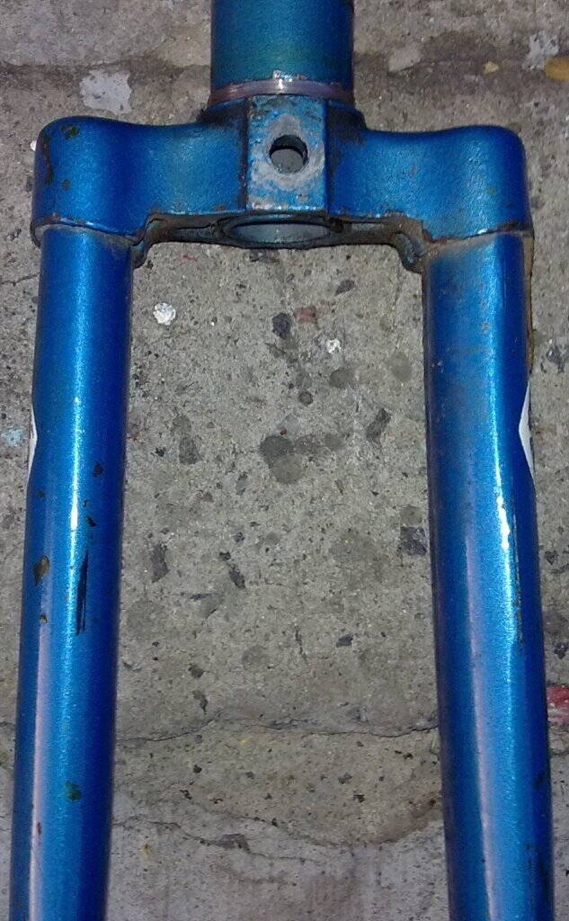 В процессе снятия и осмотра вилки вылез очень неприятный момент, а именно - трещина на правом пере вилки. Придется вилку наверное менять.