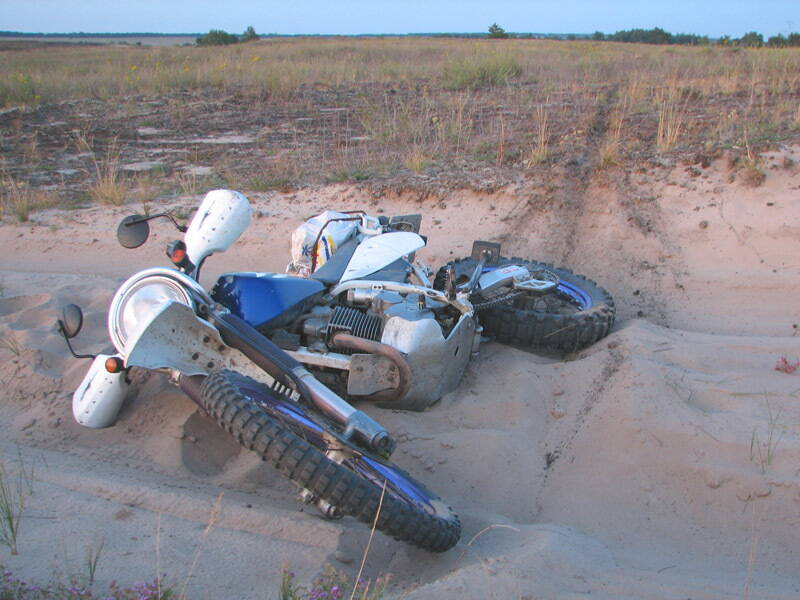 А потом были классные прострелы по мокрым песочным дорогам и пробитое колесо у Олега. Т.е. поезка удалась на славу и скоростные прохваты, и засевшие мотоциклы, и непроходимые места в лесу и зарослях, ну и технические вопросы (прокол колеса).