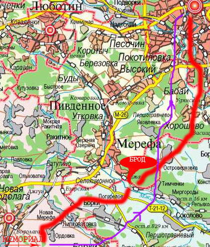 Дорога существует! На генштабовской киллометровке обозначена. На левом берегу Мжи находится по еле заметным колеям в траве между Кравцово и Жабокрутовкой и ведёт в сторону села Колесники. Но сильно заросла. Дно илистое. Глубину не меряли. Без спец средств решили не рисковать. Нужно было ещё успеть побывать на мемориале у села Подкопаи (viewtopic.php?f=10&t=18152&page=all ) и на заброшенных высотных домах под Борками.