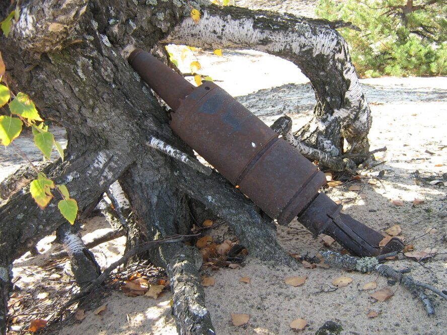 Пару лет назад наткнулся там на торчащий из песка снаряд колибра так 122мм на глаз абсолютно свежий без малейших следов ржавчины.