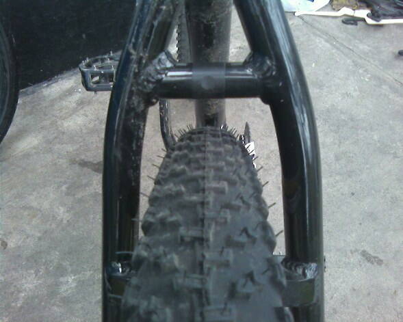 Длина задних нижних перьев 440 мм от оси каретки до оси колеса, они высокие 31мм и тонкие 16мм по всей длине. Верхние перья - трубки диаметром 22мм. Я, когда первый раз увидел эту раму, сначала расстроился. Хотелось бы чтобы перья были как на раме Elite1. Но сейчас я даже рад что они такие толстые, можно смело ставить багажник и грузить его по полной. Только крепления для брэкбосов можно было сделать поизящнее, как на Elite1. Кстати, на шоссейниках Ракета нижние перья тоже такой формы http://paketabike.com/files/rocket_rotation.gif, а верхние, конечно, тоньше.
