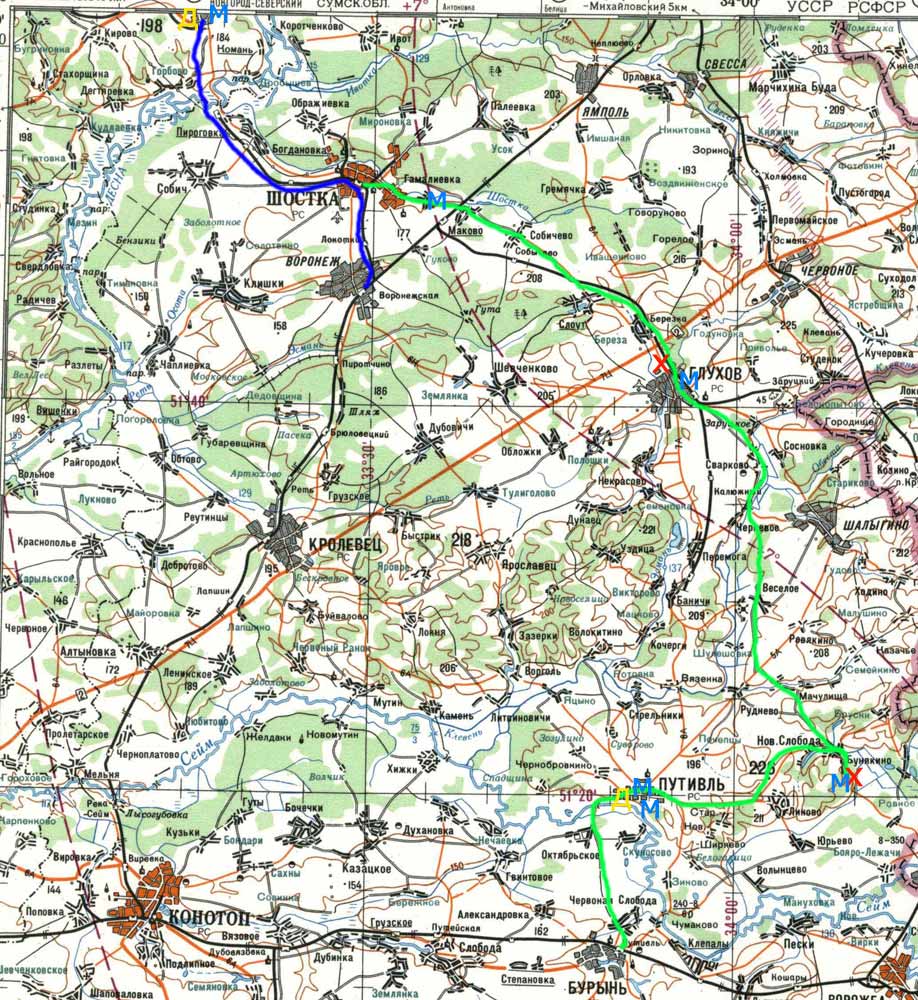 Маршрут: Новгород-Северский-Шостка-Глухов-Новая Слобода-Путивыль-Бурынь