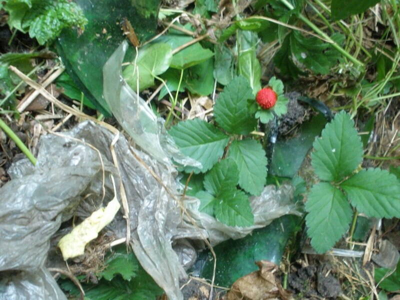 Вот примерно так поршиво наша природа и выглядит... красивая ягодка на фоне н-летнего пакета и битого стекла