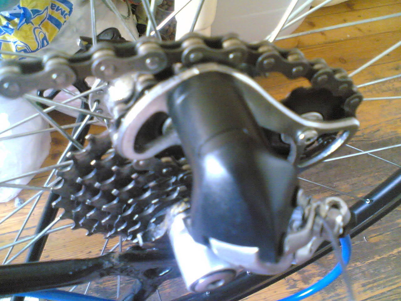 В общем я столкнулся с очередной проблемой. Цепь цепляет за ролик заднего переключателя. Но вот если переключится на 52 спереди с самую большую сзади, то цепи не хватает..
