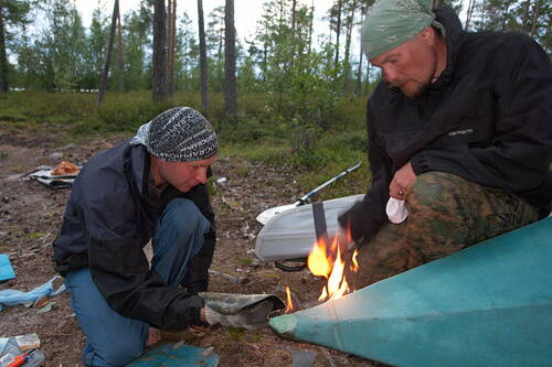 * кружка с кипятком - это, пожалуй, самое существенное отличие. в инструкции к клею про температуру ничего не было сказано. надеюсь, поджигание частично это скомпенсировало, во всяком случае латки за оставшиеся пол похода не отвалились. если отвалятся позже, теперь буду знать, как правильно переделать :)