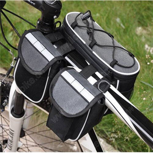 Юзаю такую сумку с Ебея-подтверждаю-удобно.Конфеты-телефон-навигатор.Правда качество не очень, застёжки на липучках. В моей,китайского пр-ва, сверху между сумок отделение для мобилы/плеера-туда при установленной на раму сумке ничего не запихать-мешает рулевой стакан(но и ничего не выпадет :-) ). Можно ещё для изготовления порекомендовать такой вариант (размером побольше):