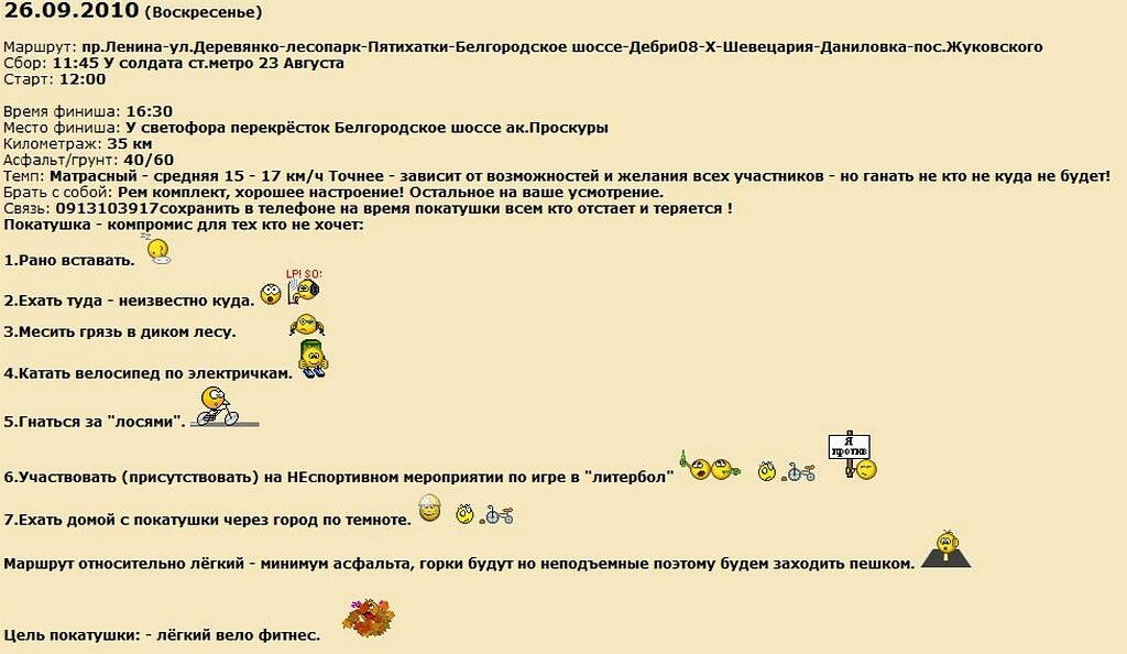 Заголовок сообщения: Re: 26.09.2010 [Вело] Компромис (YURIY®)