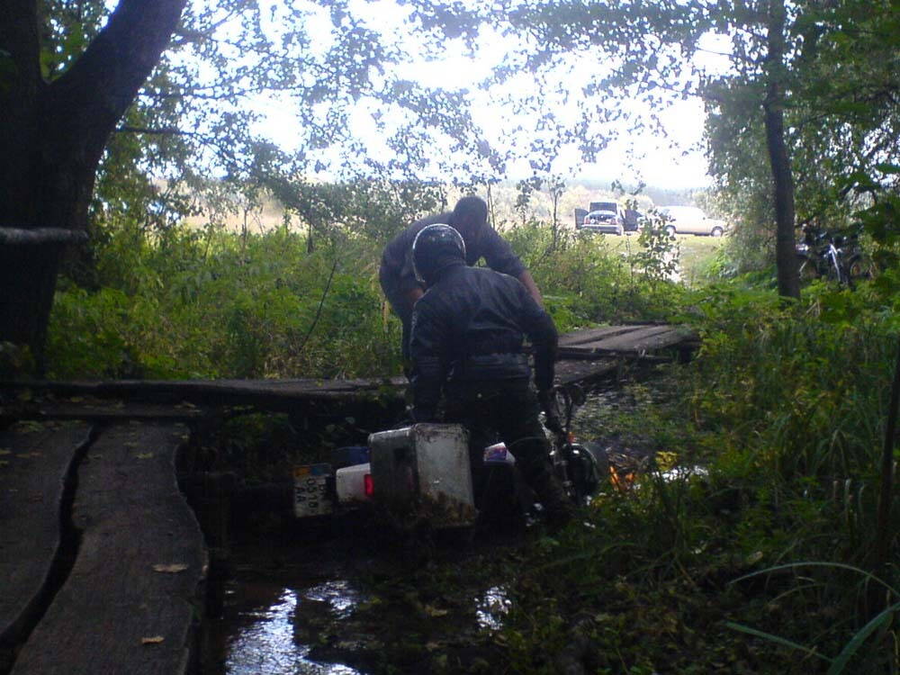потому что приехал я к роднику не как все люди, а с горы спустился. А выезжать проще было как раз по мостику. И заодно толпу добрых людей порадовал, видишь, даже фотки переслали