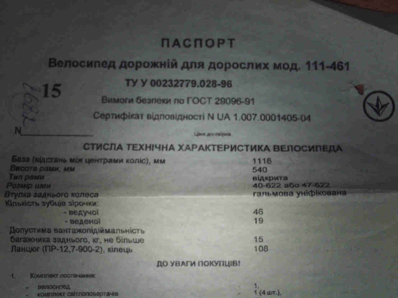 Комментарий к файлу: Паспорт был прикреплён к рулевой колонке в политэтиленовом кармашке и привязан ниткой с мешковины. А где же описание велосипеда как было ранее в былые времена?