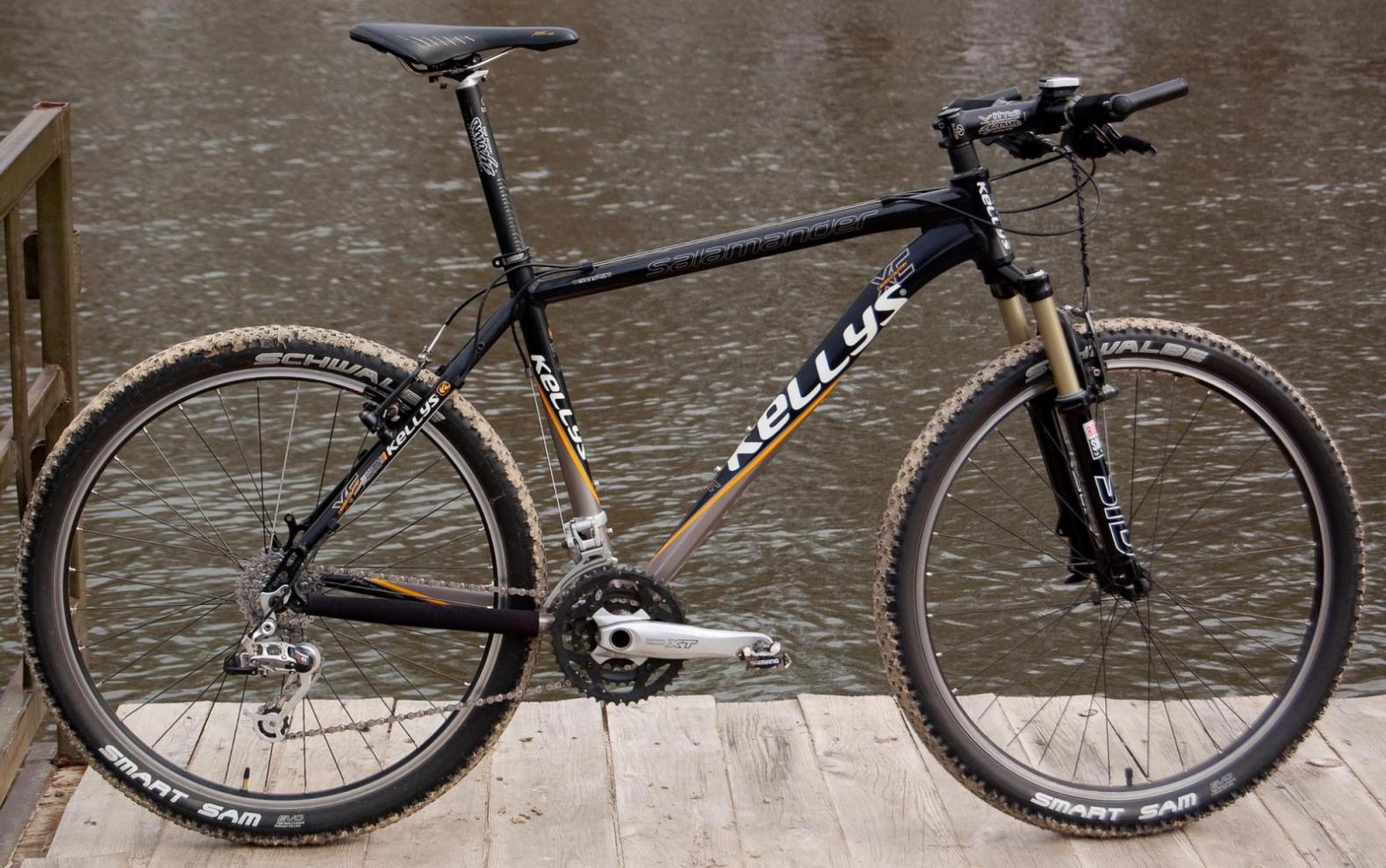 История долгая, но вкратце звучит так: куплен RockMachine в Велостиле на ул. Культуры. Что-то начало изнашиваться, что-то не понравилось, приходилось менять. Снятые запчасти складывал в сторонку поначалу, потом начал распродавать. После года замен запчастей была куплена на форуме рама Kelly's Magnus 2008, на которую перекочевало всё оборудование с предыдущего. А на базе RockMachine из валяющихся без дела запчастей был собран вел для друзей (это когда с другом прокатиться хочется, а ему не на чем). По прошествии года была куплена рама Salamander тоже на форуме, и история с кочеванием запчастей повторилась. Но повторилась немного иначе. Обвес с RockMachine был поставлен на Magnus, а с Magnusa на Salamander. Первая рама была продана. Теперь апгрейды протекают по схеме: снято с Magnusa и продано, снято c Salamander и поставлено на Magnus, ну а на Salamander ставится всё самое самое интересное.
