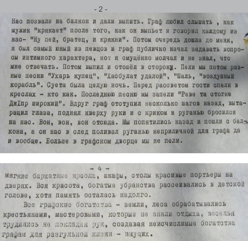 И машинописный текст на 5-6 листов, с её разрешения мы это сфотографировали.
