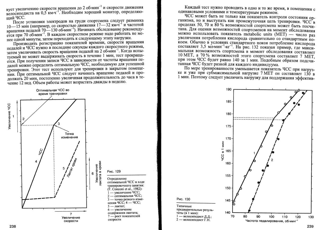 Про эффект Конкони написано в книге "Велосипедный спорт" Д.А,Полищук например на стр. 237 (смотри приложенные скрины) А так же выдержка из Журнала "Лыжный Спорт" Виктор Селуянов: СЕРДЦЕ – НЕ МАШИНА… : "У него начальная прямая графика будет продолжаться до пульса порядка 170-180, а затем начнет даже загибаться вправо от прямой. Выше 180-190 пульс просто не растет. Почему это происходит? Из-за того, что у спортсмена много ОМВ, закисление мышц, которое начинается в оставшихся гликолитических МВ, слишком мало. Сердечно-сосудистая система уже имеет слишком большое возбуждение из-за того, что большая мощность работы выполняется, мышцы сокращаются с очень большой силой. И сердце на такое слабое закисление просто не реагирует. Поэтому рекрутирование дополнительных двигательных единиц не приводит к росту ЧСС. Точку перегиба на таком графике (см. рис. 1, точка B) часто называют точкой Конкони, и связывают с АнП. На самом деле эффект Конкони никакой связи с АнП не имеет и, к сожалению, вошёл в практику спорта безо всяких на то оснований. Дело в том, что Конкони проводил свои исследования на квалифицированных бегунах, у которых подготовка была на уровне КМС и МС. Что такое бегун уровня МС — это человек, у которого неразвитые мышцы, а АнП практически равен МПК. Поэтому, как только он включил все свои ОМВ, а гликолитических у него очень мало, сердце больше не возбуждается, пульс при этом 170 -180 уд/мин. Чтобы сердце вышло на пульс 210-240, нужно очень сильно человека закислить, а эти люди не могут закислиться. Их сердце перестаёт увеличивать ЧСС, они еще две ступеньки лишние отработают и говорят: "всё, отказываюсь от работы, мышцы не тянут". А у спортсменов, имеющих хорошее сердце и неподготовленные мышцы, эффект Конкони не наблюдается, у них нет такого явления. У спортсменов, имеющих много ГМВ, пульс начинает расти вверх, никаких переломов и западений вниз нет. У 80% спортсменов эффект Конкони наблюдается, и точка Конкони даже совпадает с АнП, а у 20% либо она вообще отсутствует, либо нет никакого совпадения. В связи с тем, что на графике теста неподготовленного спортсмена нет эффекта Конкони, а АнП есть, то явление не воспроизводится, а значит, те причины, на которых это явление теоретически основывается, отсутствуют. Логика такая: если есть эффект Конкони, то есть АнП, есть 4 ммоль/л лактата. Где здесь это? Вообще нет никакого перелома, всё идет только вверх (см. рис. 1, красная сплошная линия). Отсюда вывод: эффекта Конкони не существует в природе, есть некто Конкони, который что-то увидел, обозвал это своим именем, приписал несуществующую в природе взаимосвязь. "
