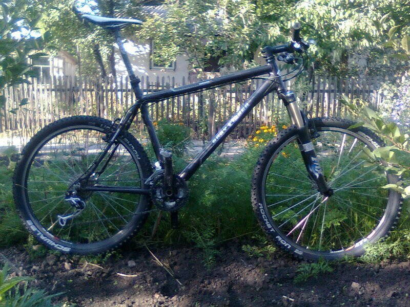 Собрал новые колеса и вилку алюминькю (-1.5 кг от стоковой аморт.), ах да, еще новый шатун на 2 звезды, педали контакты - Шимано М520.
