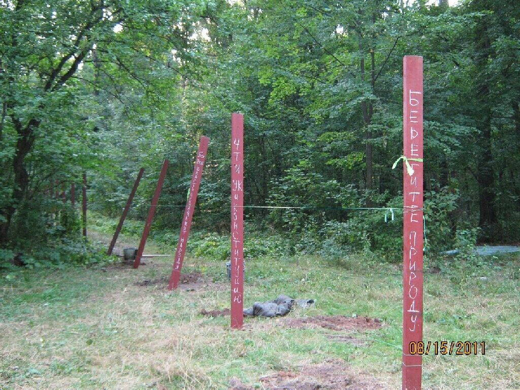 В понедельник вечером несколько жителей г. Харькова (человек 25) прогуливаясь в Лесопарке увидели забор на Зенитовской поляне и двух рабочих, возводивших ограждение. Граждане поинтересовались, чей забор, кто хозяин. Требовали показать документы на участок. Документы предъявлены не были. Рабочие гарантировали, что на следующий день документы точно будут.