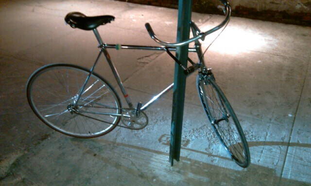 еще один фикс,хозяин Mike ,месенжер,механик(хреновый,укуреный на постой) вел трековый швин (забыл модель) начало 80х, хромоль рейнолдс 531 весь вел, рама охрн. пошарпана но перекрашивать не хочет,говорит -меньше внимания воров привлекает ,но обвес хороший ,старая кампа.