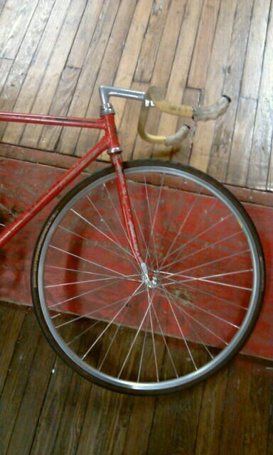 еще один фикс,хозяин Mike ,месенжер,механик(хреновый,укуреный на постой) вел трековый швин (забыл модель) начало 80х, хромоль рейнолдс 531 весь вел, рама охрн. пошарпана но перекрашивать не хочет,говорит -меньше внимания воров привлекает ,но обвес хороший ,старая кампа.