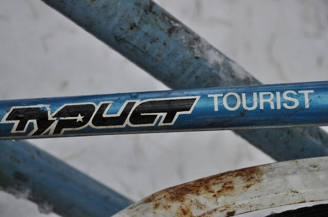 Доделал нового коня. ХВЗ-Турист 1987 года рождения, найден на даче у знакомого, мостик крепления заднего томоза вместе с клещами оторван от рамы(переделан по типу Старт-Шоссе-вварена трубка). С сожалением пришлось ободрать родную краску(голубой перламутр)- много очагов коррозии. Колеса и спицы потускнели и тд.