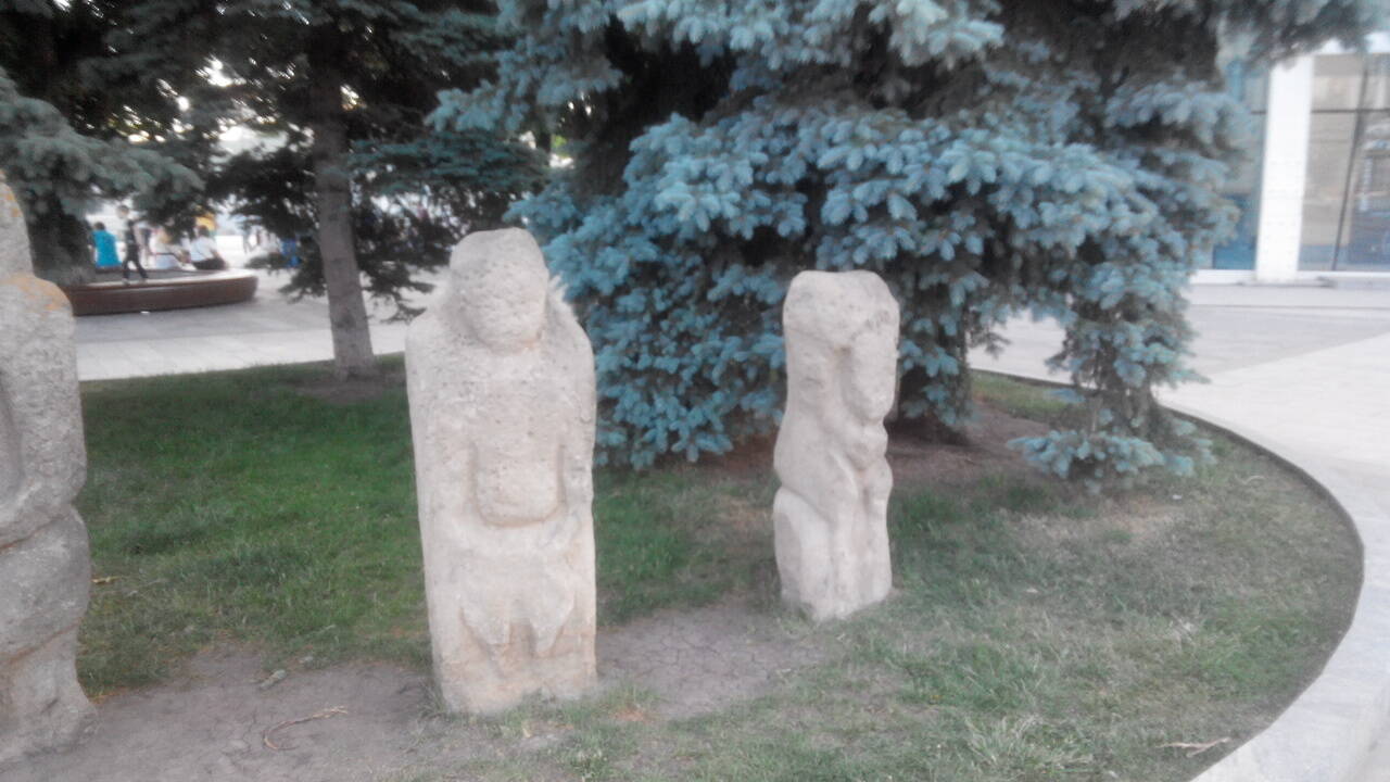 Раньше при въезде на территорию стояли скифские бабы, потом исчезли. Пропажу искали-искали, и нашли… Каким-то чудесным образом эти окаменелые тётки оказались в Краснокутском Дендропарке… (хорошо, что не у кого-то на даче)