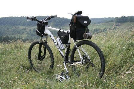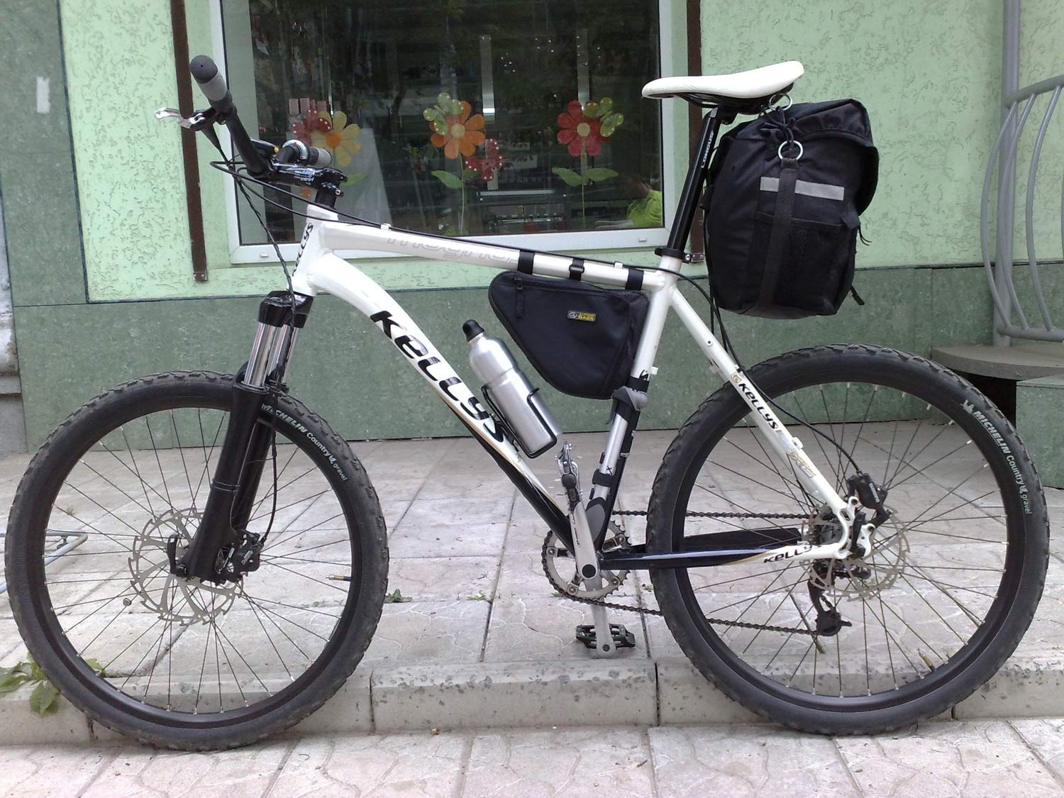 Вот моя чертопхайка 3 года назад. Вилка Марзочи Дерт Джампинг. 9 мм ось. 100 мм ход. резина внутри. высота 500 мм. В подседельном бауле все, что нужно для автономного похода на 7 дней.