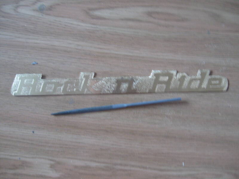 Комментарий к файлу: Купился кусок милиметровой латуни,в виде полосы.Надписи были готовы в голове давно,набрал на компе подобрав шрифт,распечатал,бумагу на двусторонний скотч и на металл (возиться с оракалом и плоттером-не было ни желания ни времени-один листик печатать врятли взялись бы),прямо по бумаге дремелем провел контуры,отрывал бумагу постепенно-мешалась.
