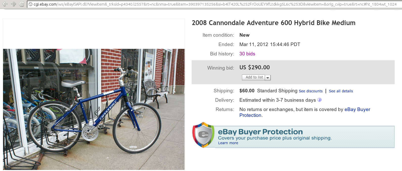 Лот ушел по цене 290 долларов. По самым большим подсчетам, после авиадоставки в Украину все расходы составили бы 480 долларов, если морем - 420.