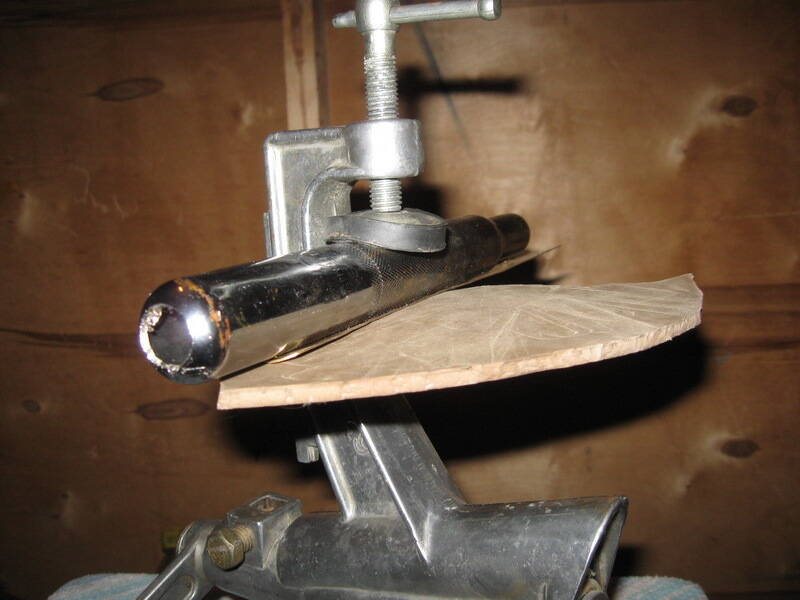 Комментарий к файлу: Изгибание таблички,соковыжымалка послужила тисками (можно поржать),-накладка,сверху старый подседел,долго и муторно затягивал винт-все получилось,хотя доправлять изгиб пришлось притягивая табличку хомутами металичискими,к тому же подседелу и круглой палке меньшего диаметра.