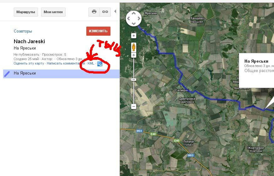 В Google Maps нарисовал трек. Сохранил в файл .klm.
