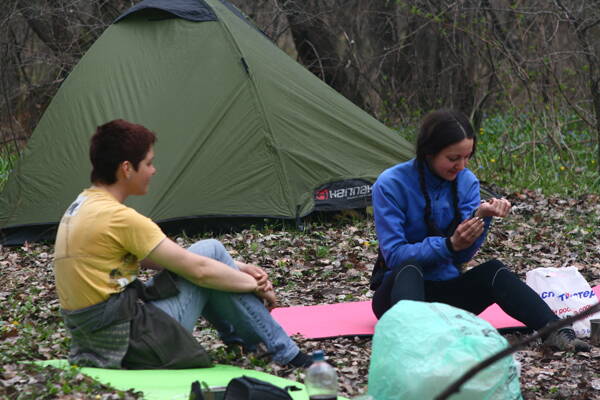 По дороге на вокзал встретели Дашу и Сергея. Потерявшихся в Святогорске. Они не нашли желье(все забито, что и требывало ожидать на паску) и поехали эльками на харьков.