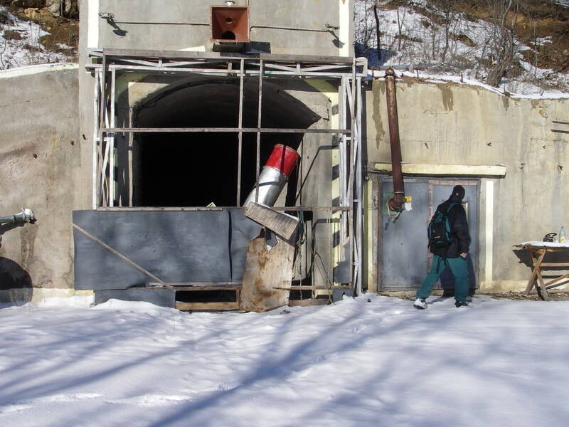 В начале подьема к самим порталам около разгромленого здания гостиницы для строителей, в бывшем КПП кто-то живет. Как мы потом узнали, тут организован реабилитационный центр для алкаголиков и наркоманов. Похоже, развалины обретают вторую жизнь.