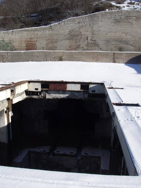Но какое там - учебный центр. Объемы сооружения просто поражают своей колоссальностью. В плане подземный штабной центр походил на огромную букву «А». Объект сообщался с миром двумя расходящимися 500-м потернами, которые перекрывались на входах двумя двойными шлюзовыми камерами с массивными противоатомными бронедверями. Западный портал вёл в тоннель первого уровня, Восточный - в тоннель четвёртого уровня. В глубине горы в блочном пролёте потерны сходились. Соединялись они наклонным тоннелем-перемычкой (местами он двухэтажный).