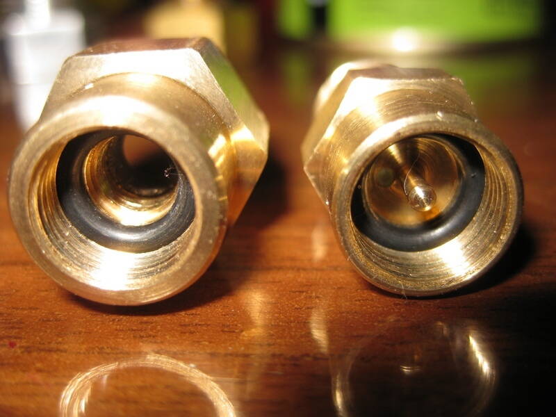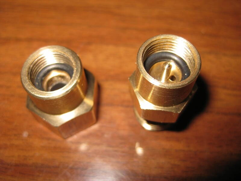 Рекомендую для заправки вешать баллон немного наклонно, тогда мусор будет скапливаться в "плече" баллона и не так забивать вентиль. К сожелению, в наших баллонах внутренность ржавеет и появляется много шелухи. Вентилек переходника, стравливающий клапан и клапан баллончика конечно защищены встроенным фильтром переходника, но основной вентиль большого баллона может постепенно пострадать. к сожалению, с этим сделать можно немногое. Самое главное - это как можно реже пользоваться вентилем баллона - для этого и сделан третий вариант переходника, ну и также не вешать баллон вертикально вентилем вниз. Я иногда, когда газа в баллоне почти не остается, в перевернутом состоянии резко открываю вентиль и сбрасываю мусор с остатками газа. Когда баллон пустой я иногда также вынимаю иглу вентиля и чищу от мусора, потом вытряхиваю из баллона остатки ржавчины и собираю.