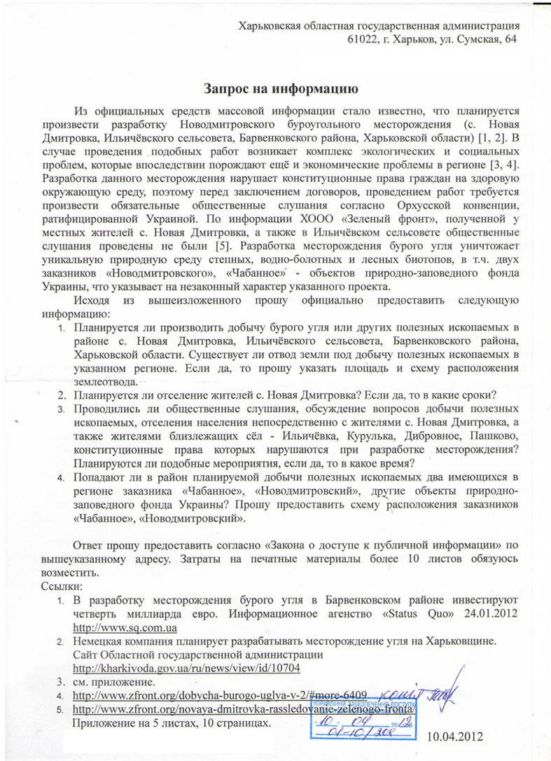 Харківська обласна рада це звернення проігнорувала, прийняв 21 червня Рішення "Про розгляд клопотання Державної служби геології та надр України щодо продажу на аукціоні спеціального дозволу на користування надрами", - чим і поклала початок видобуванню в Барвенківському районі бурого вугілля.