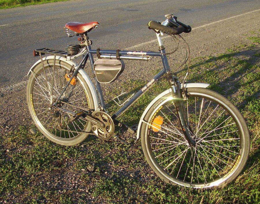 Поскольку рамы ХВЗ не попадалось, собрал на раме чего-то тайваньского, купленного на б/у. Из родного осталась только рама, которую перекрасил. Получилось вот что :smile: